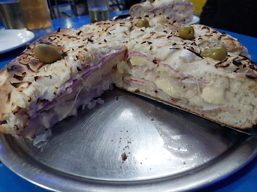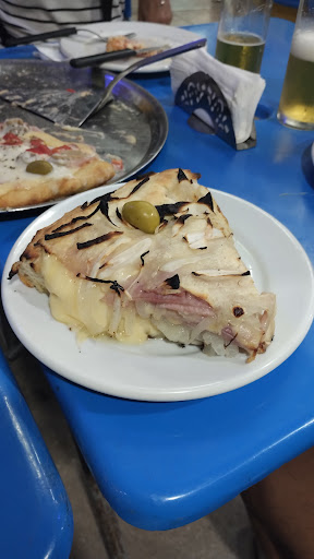 Read moreMuy buena pizzería, con precios muy buenos. Las pizzas que comimos fueron una de champignones, y otra de panceta y estaban espectaculares. Además nos pedimos una porción de la fugazzeta, y es una bomba. No es el lugar mas bonito para ir en tema ambiente, pero el mozo un capo, atiende de 10, muy atento y sabe vender. La foto es de la porción de fugazza, de fondo se puede ver un poco de una porción de la...