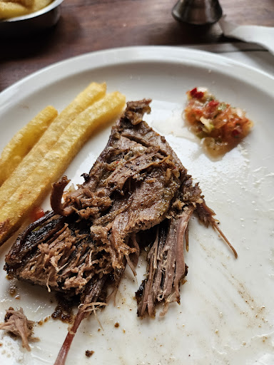 Read moreHervorragendes Preis-Leistungs-Verhältnis wenn man das empfohlene Tagesangebot vom Schild vor der Tür nimmt! Das Angebot für zwei Gäste wäre auch ausreichend für drei Leute, da auch noch Brot und Nachtisch gereicht wird. Mauricio ist der freundliche Gastwirt. Der Chef steht selbst gerne am Feuer und kümmert sich um das Asado. Die Angestellten sind jung, guter Laune, aufmerksam, sauber angezogen. Im Inneren des Gebäudes befindet sich ein großer Innenhof für Feiern. Der Hof ist Regendicht und lichtdurchflutet. Das Gebäude ist von 1870, zehn Jahre älter als die Basilka! Die Einrichtungen sind fast alle original. Aus einer längst vergangenen Epoche. Hier blieb die Zeit still. Früher war das Restaurant mit dem angrenzenden Hotel ein einziger Komplex. Jetzt ist nur noch eine Tür als kurze Verbindung vorhanden. Wir schauten uns hier gut um; im Restaurant, im Innenhof und am Feuer ist es sauber, aufgeräumt. Ein junger Mann von der Bedienung fällt harmonisch auf weil er Tanzschritte/ moves probiert, wenn er zur Theke geht. Alle Angestellten heben sofort hingefallenes auf, wenn etwas die Ordnung/ Sauberkeit stört, dann wird dies egalisiert. Zum Tisch kommen die Angestellten regelmäßig, fragen ob alles in Ordnung ist. Deutsche Gründlichkeit weil der Chef Nachfahre deutscher Einwanderer ist? Mauricio war selbst übrigens zwei Jahre in Berlin- Kreuzberg. Er ist ein großgewachsener, ausgeglichener, freundlicher Germane.