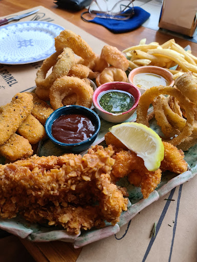 Read moreLa comida es rica, abundante y super económica. Las tablas para compartir dicen para 2 pero comen 4, literal. Recomiendo la tabla "a granel". Los raviolones de cordero son una delicia. La tabla de mar es para destacar también La bebida: hay botellas grandes tanto de cerveza, como de gaseosa, con lo que ayuda al presupuesto. También ofrecen tragos Los precios excelentes!!! El servicio: a veces maso, hay chicas con poca experiencia. Pero muy predispuestas y amables. El lugar es cálido y acogedor, decoración estilo industrial en un salón y vintage en otro. Muy aesthetic !!! También hay un patio con un toque vintage, amplio y muy agradable para comer ahí. Dato de color: para los amantes de los gatos, en el patio hay 2 que si les haces mimos se quedan cerca. Ya fuimos varias veces y salimos siempre...