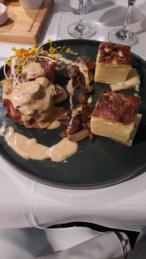 Pedimos el lomo envuelto en panceta, con salsa de crema y champignones, y mil hojas de papas así como también la ensalada de salmón, camarones, calabaza, champignones y guacamole. Las porciones eran enormes y super abundantes. No nos lo podíamos terminar. La calidad de todo era increíble. La ensalada tenía un montón de salmón y camarones, no eran puras hojas verdes, por lo que realmente valía su precio. Incluso el volcán de chocolate estaba espectacular y era tan grande que facilmente era para 2 o 3 personas.