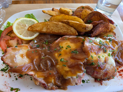 Pedimos cuatro platos para cuatro personas: bondiola a la portuguesa, matambre a la fugazzetta, bife de chorizo y carré de cerdo braseado en cerveza. Los platos llegaron abundantes: sobraron casi la mitad proporcionalmente, porque todo estaba muy bien servido – excepto el matambre, que era bastante chico comparado al resto. El bife y el carré eran frescos y jugosos, mientras que la bondiola ofrecía sazón y muy buena cocción (se cortaba con tenedor).