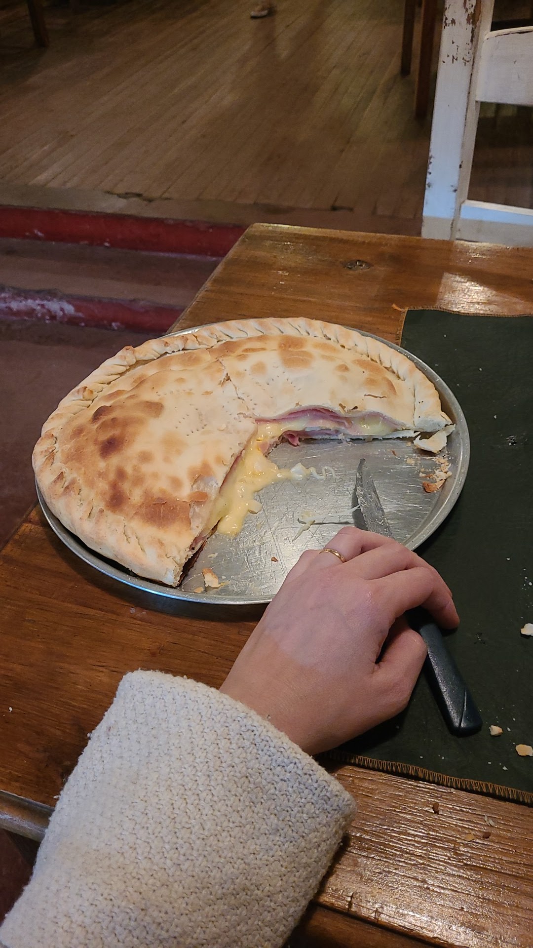 El lugar nos sorprendió a mi grupo y a mí vamos muy seguido capilla y nunca habíamos tenido en cuenta este lugar ya que no está en el centro era muy tarde Y de todos lados nos rebotaban para comer esta fue nuestra última opción y desde ahora es una de las primeras nos abrieron las puertas muy amablemente fueron súper gentiles atendieron como si fuese las 12 del mediodía cuando en realidad eran las 12:30 de la noche el ambiente es de bodegón piso de madera ambiente sencillo agradable y limpio la pizza es casera excelente y las empanadas estaban bárbaras sin querer encontramos un lugar con excelentes pizzas y empanadas felicitaciones estamos muy contentos de haber encontrado este lugar es una muy buena opción por los precios te barato y exelente...