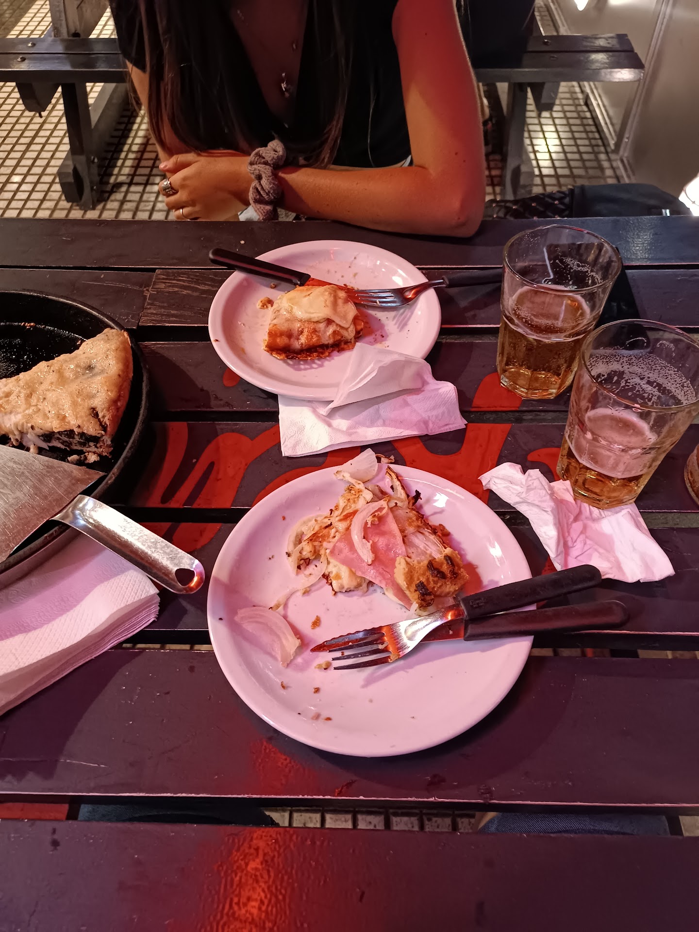 Pésima la calidad de la comida y la atencion! Y Caro! NO lo recomendamos. Nos sentamos, arman la mesa, y acto seguido pedimos que nos cambien los vasos ya que estos estaban muy mal lavados. La moza se acerca al mostrador nos da la espalda y procede a "limpiarlos" con un repasador de dudosa higiene que lleva debajo de su brazo y los trae nuevamente a la mesa. Tuvimos que lavarlos con alcohol en gel. Pedimos la Kentunessa [$18.900-] haciendo la expresa salvedad de que la carne debía estar muy bien cocida. La cortamos: cruda. Pedimos que la terminen de cocer. Nos explican que como la carne está congelada "queda asi" rosada. Lo tendrían qus avisar cuando pedimos el plato y aclaramos el nivel de cocción. Nos traen otra nueva: en un estado aun peor a que la se llevaron. Luego de hacer varios cortes, advertimos que esta en su totalidad en la misma condición. La pedimos para llevar y esperamos poder cocerla en nuestra casa. Nos cobraron el monto total, sin ningun tipo de atencion, y sin pedirnos al menos disculpas por el desastre. En las fotos el color...