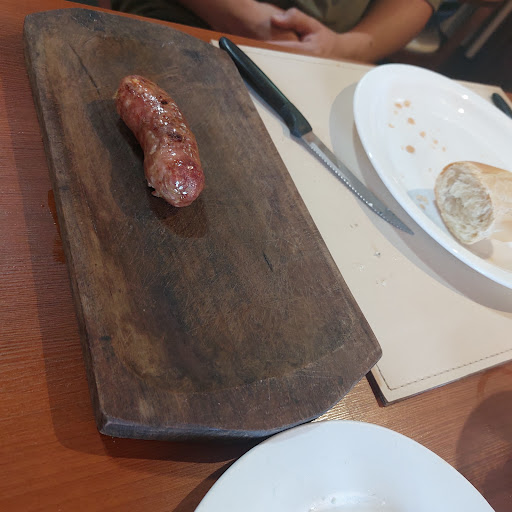 Lo mejor del lugar fueron el sabor de sus platos y los chistes de los mozos. La carta es muy extensa, demasiado, abrumada leer la carta de un listado interminable de excel. El precio del cubierto ($700 c/u) me pareció elevado. Si bien hubo dos paneras, mantaca, queso azul y unos ajíes con pimienta al recibirnos, había mucho grisín y poco pan, no quise pedir más por temor a que me cobren extra. Nos avisaron en cuanto llegamos que no había anchuras. Pedimos un chorizo que venía al plato sin nada y era un chorizo común del tamaño de uno bombón, pero no lo especificaba. Las papas fritas tenían un poco de gusto a aceite. Llegamos un poco tarde, pero los mozos estaban apurados, sentía su mirada constante en la mesa, levantaron enseguida los platos sin importarles interrumpir la conversación familiar de sobremesa. En general comimos bien, pero gastamos un 50% más que en otros lugares, después nos dimos cuenta que en general todo en Chacabuco sale más caro y que los comercios gastronómicos...