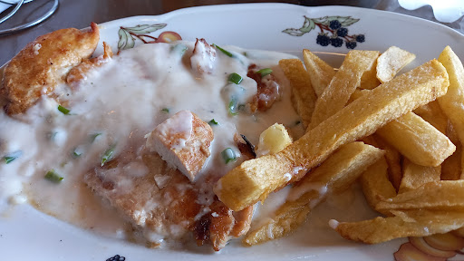 Read moreExquisita y fresca la comida. Siendo un día domingo y local lleno de comensales. El mozo que nos atendió es un jovencito servicial y discreto. Pedí pollo con salsa al verdeo y guarnición. En este caso vino con papas fritas que eran realmente papas y cocinadas en su punto. El pollo era de pechuga, también en su punto de cocción y agradable a la vista. El costo es módico. Lugar con muchas opciones de comidas. Está ubicado dentro del parque termal. Recomendable El ambiente que le falta una estrella es porque hacia demasiado calor, estamos bajo techo pero no estábamos...