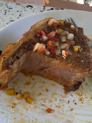 Read moreFui un domingo de enero 2023 con expectativas de almorzar pasta. Cambie de opinión cuando la moza me advirtió que en el menú del día se ofrecía también bife de chorizo. Transcurridos 20 minutos llegó mi plato junto con los de dos comensales que me acompañaban… ( todos sabemos que ese tiempo es insuficiente para una buena cocción ) Por primera vez recibí un “bife de chorizo” recubierto con salsa criolla, luego después de cortar la carne comprendí el motivo. Se trató de un maquillaje culinario ( en otras palabras un fraude ) dado que como se puede observar en la imagen, la carne estuvo hervida y presumiblemente calentada en un horno eléctrico o microoondas. Sometida la imagen al examen de un carnicero - el que concluyó que no se trataba de bife de chorizo - me sentí doblemente estafado. Tal vez cuadrada podría ser el corte, pero el especialista no me pudo brindar certeza. Detalle: para no empañar el momento no me atreví al reclamo y por obvias razones, tampoco a pedir que me reemplacen el...