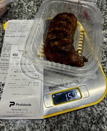 Read moreHicimos un pedido por PedidosYa a las 9:30 de la noche de medio kilo de lomo y verdura a la chapa, y nos llego solo la verdura: una cebolla dos mitades de zanahoria, medio morrón y dos tiras de berenjena. Hicimos el reclamo pertinente a @pedidosya y nos reintegran del pedido 4200$ que volvimos a pedir la carne, 1/2 kilo de lomo, a las 11 de la noche, después de reiterados llamados al local reclamando el pedido que nos decian que no habia repartidores, finalmente llego el pedido tal como ven en la foto, 157 grs. De carne helada, y nos cobraron x 500grs. Llamamos nuevamente x telefono y la solución que nos ofrecieron es que nos acerquemos al local que nos daban el resto de carne que faltaba. Unos verdaderos impresentables! Nos...