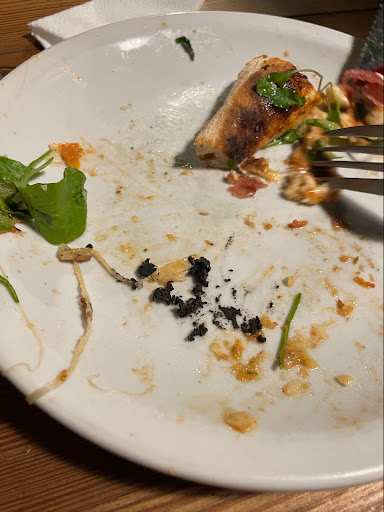 Read moreLa comida estaba toda muy buena (recomiendo totalmente, todas y cada una de las pizza) salvo unos panzzotis de salmon que tenían un sabor muy artificial, parecían de freezer y el flan que pedimos de postre, el cual estaba asombrosamente insulso. El servicio fue bastante bueno, nada de lo que quejarme, pero tampoco nada sobresaliente. Por último, el punto mas flojo del local por lejos, el ambiente, en la parte de de tro del local se ve que ampliaron la cobertura para tener más mesas adentro, pero dejaron el piso de piedras en el cual es INCOMODISIMO sentarse o mismo comer en paz con una mesa, fuera de esto mismo hay sectores muy mal iluminados y los baños, dejan muchísimo que desear, la puerta el vidrio esmerilado, por lo cual se ve tu silueta desde afuera, la cadena no anda, por lo cual debes meter la mano en la mochila del inodoro pues tirar el botón, el papel estaba mojado, al lado del lavamanos, por lo cual...