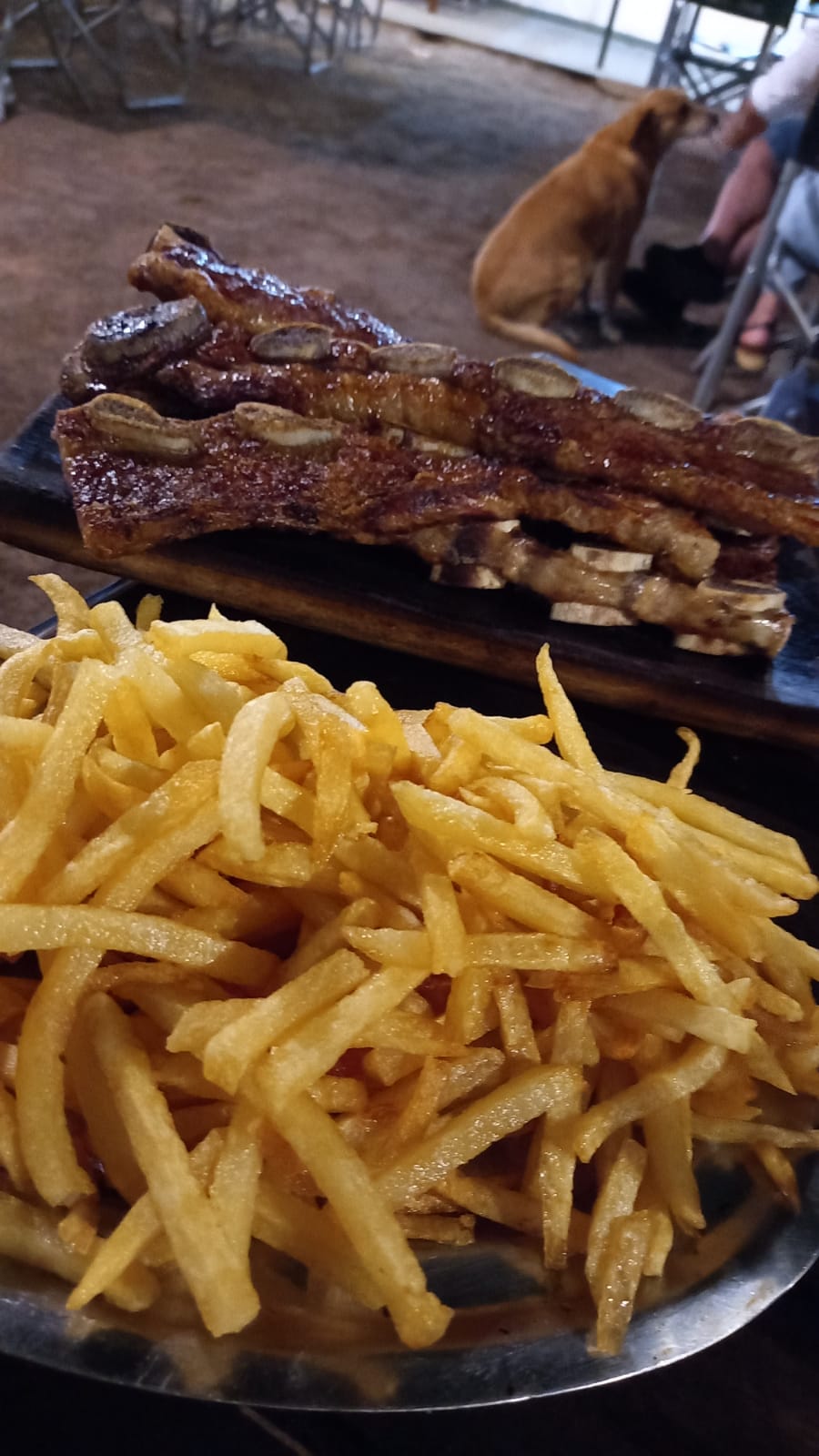 Read moreLqugar cálido y con buena atencion Pasamos de casualidad por esa cuadra con mí pareja y vimos el precio del menú del día y entramos, primer cartel sin wifi, hablen decía, me gustó esa idea, yo de casualidad no llevé mí celular y es muy cierto q últimamente nadie habla o hablan pero sin estar atentos. No había música, punto súper a favor, ahora a todos los lugares q fui la música está por encima del tono de voz de los comensales (claro si pocos hablan por ende nadie lo nota) Llegamos y a los dos minutos vino la moza muy amable, con la entrada de tostadas, pan y aderezo de tomate, cebolla de verdeo con mayonesa si no me confundo, presentó la carta y habló del menú del día. Pedimos el menú del día que fue asado con papas fritas,ambas cosas super ricas Papas crujientes sin aceite sobrante, buena porción Asado super tierno y muy buena porción Una lata de cerveza y un agua saborizada Cobran 280 la mesa en total Precio total 4390 y no aceptaban tarjetas porque no había posnet. Pero si tranferencia bancaria y...