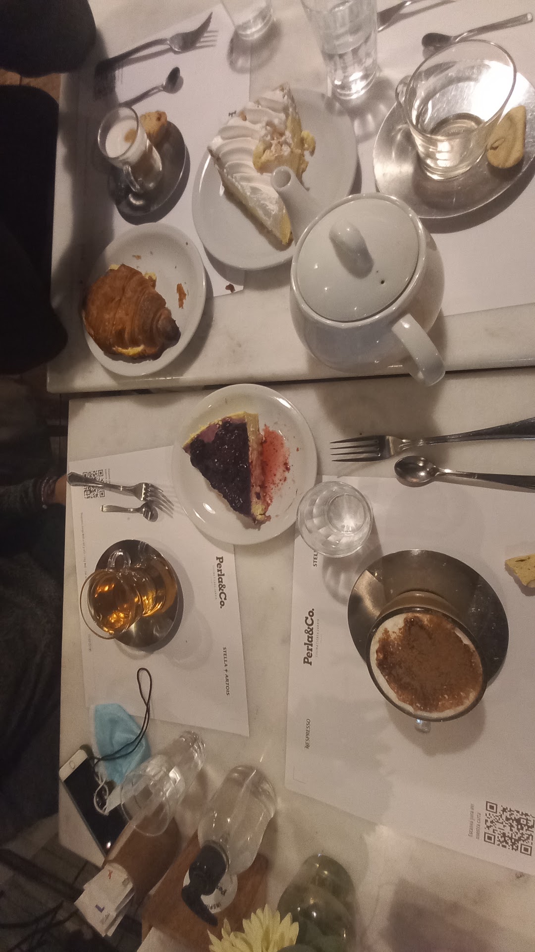 El lugar precioso realmente. Muchos detalles que acompañan el lugar muy bien. Me gustaría volver cuando haga calor, ya que hacía mucho frío y la calefacción no era suficiente. No me pude sacar la campera durante el tiempo que estuvimos (aprox 1:30 hs). La atención muy bien y muy amables, solo me molestó un poco que al necesitar a la moza, no pude hacerle la seña, ya que estaba de espaldas hacia las mesas, mirando instagram en el celular (lo vi porque lo alzó para mostrarle un video a su compañera), asi que tuve que esperar a que terminara para llamarla (No le hecho la culpa, estamos en una ERA complicada). Nos pedimos 3 tartas: crumble de manzana, brownie con dulce de leche y merengue, y carrot cake. La mejor: la carrot. El brownie húmedo, bueno. Y la manzana de la crumble la hacen a partir de azúcar caramelizada pero estaba un poco amargo porque se les pasó el caramelo. Pero, así y todo, muy rica. Los macarons excelentes! Los cafés buenísimos. Uno se nos había enfriado y pedimos que lo calienten. La calidad de la materia prima se nota que es buena. Al finalizar, en la cuenta había una diferencia de precio con la carta, la cual avisé y me lo resolvieron sin...