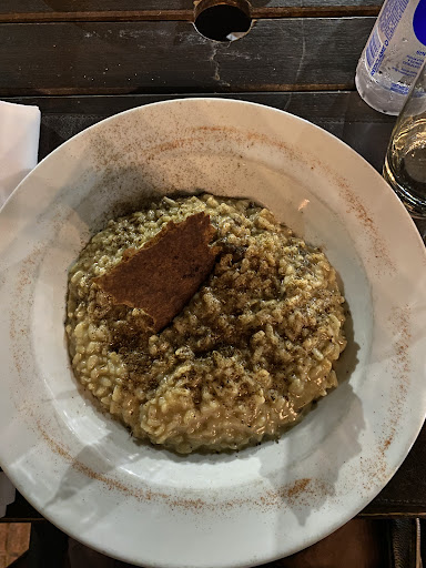 Read moreEl primer factor que no me gusto fue la carta, es variada pero no incluye las bebidas, ósea no podes ver qué opciones tiene ni el precio, y cuando estábamos terminando de tomar una coca que habíamos pedido nos querían traer otra y nisiquiera sabíamos cuanto salía, capaz para algunos no es problema pero a mi no me gusto. Apenas nos dieron la carta y ya a los 2 minutos estaban de nuevo en nuestra mesa para saber nuestra orden, yo que soy muy indecisa con la comida me molesto un poco, luego tardaron 20 minutos aproximadamente en traerla, mientras esperábamos nos dieron una panera con una salsa que estaba bastante buena, se notaba que los panes eran caseros. La comida estaba bien, mi compañero pidió un cerdo con papas al horno que eran sugerencia del chef, no lo probé pero no se veía mal, yo opté por risotto de hongos. La porción estaba bien, no era tan grande la porción pero me costó un poco terminarlo, estaba bien cocinado, con rico sabor y tenía la cantidad justa de hongos, además eran suaves y no opacaban el gusto del arroz. Mientras comíamos nos trajeron una segunda panera, está con otros tipos de pan, que como dije anteriormente parecían caseros y un tarrito con queso rayado. Muy bueno. Como conclusión diría que no es un mal lugar para comer, la atención no es mala y aunque hay que pagar cubierto si siento que lo vale por...