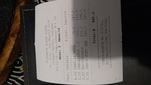 Read moreLa opinión se basa en la visita hecha el 10/12/2019 (+) Las pizzas están OK. No son nada extraordinario pero tampoco son feas. La variedad dentro de todo bien. Hay Mila pizzas (nosotros no las probamos) y pastas también en la carta. (+) La atención bien. Pocos mozos pero igual te atienden rápido. La pizza demora lo normal. (+) Bebidas de 1.5L. (-) Principal desventaja es el CUBIERTO. Cobran $35 por persona y no ofrecen absolutamente NADA. Solo un dedal de mani. Nos pareció un robo total y justifico la nota. Lo que solemos hacer es tomar el cubierto a cuenta de la propina. Me dió mucha pena por la moza que nos atendió bien pero lo del cubierto fue un robo! Estuvo OK...