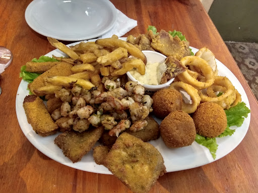 Read moreProbamos la tabla de pescados para 2 $690 No valía la pena. Contenido: papas fritas : destacó que eran de papas reales y no las precocidas Rabas: apanada y fritas, no eran bien tiernas, pero se podian comer. Pescado 1: porción cuadradita, apanada y frita sabor normal tipo milanesa de pescado Pescado 2: porción cuadradita, apanada y frita llena de condimento, sabor a condimento, nada más, el pescado se perdió. Pescado 3: bastón de pescado, frito, sabor a bastoncitos de pescado precocidos. Pescado 4: bolita de pescado frita, horrible, para empezar estaba fría, la fritura estaba blanda, la parte de adentro estaba congelada no estoy segura si es así o la sacaron del frizzer y la mandaron. Langostinos: feos, sabor a condimento quemado además de que no estaban limpios, tenían la tripita negra del lomo(intestinos) lo que le da el sabor amargo y arenoso. en medio del plato se puede apreciar un potecito con una salsa, muy linda! Pero tranquilo es solo mayonesa LA ATENCIÓN NORMAL.
