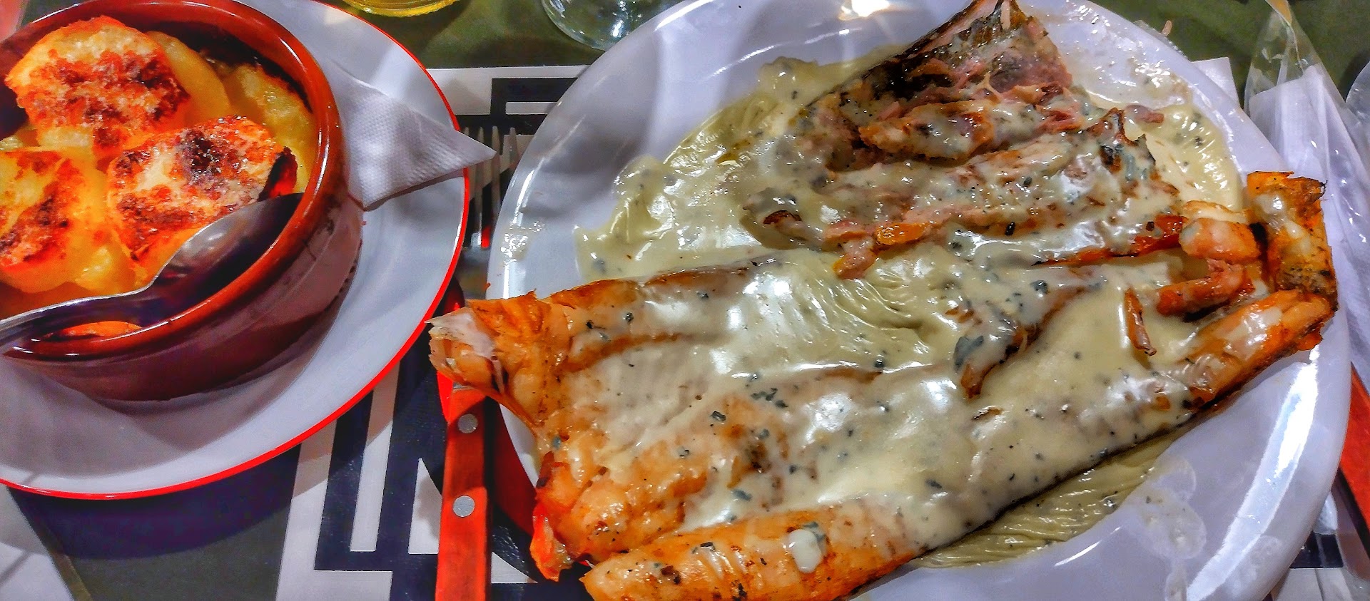 Durante la comida, mi hijo de 2 años y medio accidentalmente dejó caer una copa en la mesa, lo que provocó una pequeña rajadura en la misma. La moza, de manera educada, retiró la copa sin hacer ningún comentario. Sin embargo, lo que siguió fue completamente inaceptable. El dueño, quien estaba parado en la caja, no dejó de mirar nuestra mesa de manera insistente y hostil. Incluso lo vi hablando con la moza, señalándonos como si hubiéramos cometido un delito. Este comportamiento fue incómodo, intimidante y completamente innecesario.