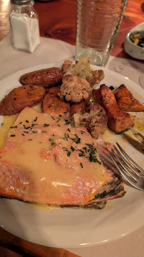 Read moreEl único lugar abierto un domingo por la noche en plena temporada, lo cuál nos pareció raro.... Pero fue una gran oportunidad porque comimos y pasamos una gran velada. Platos abundantes, buena atención y poca espera. Pedimos trucha con vegetales asados y cordero con pure. Increíble. La entrada de trucha también fue sabrosa! Los precios, accesibles. Solo quizás un poco caros los postres ( 12 mil pesos un flan) pero el resto de los platos super bien en cuanto a sus precios.