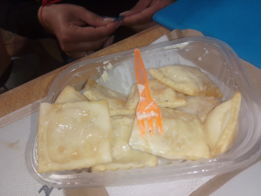 El la Expo Industrial Comodoro Rivadavia pedimos tallarines y ravioles... Pésimo que la cocinera meta los fideos que se salen de la bandeja descartable, cuando quedan afuera, CON LA MANO!!!! Podrian tener una mejor herramienta para depositarlos en ella, cuando los sacan de la olla, no un colador con manija.... la crema que le pusieron estaba fria, podrian dar tenedores más convenientes a la comida que se sirvió.... Y pésimo tambien que el que te cobra, se haga el desentendido, cuando le hacés el comentario de lo que viste, aduciendo que "no se puede meter en la cocina porque sino la cocinera le pega".... siendo que es él quien está vendiendo el producto y...