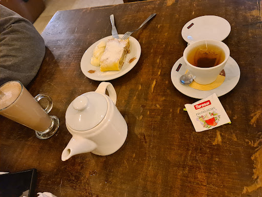 Read moreEl strudel está rico, lástima que parece recalentado en el microondas,pero igual es rico. No tienen té en hebras ni nada super representativo de comida alemana para el té (salvo el strudel). El lugar está ambientado muy Mariana, mucha frase motivacional, mucho no uses el celu, mirate la cara etc, siento que no pega con la esencia de la cumbrecita (pero lo mismo pasa con casi todos los lugares, se quedan a medio camino) El baño estaba super sucio y tenía mucho olor. La chica que nos atendió primero era buena onda, pero cuando pagamos vino otra, pusimos la plata arriba de la mesa y mientras que esperabamos que vinieran a cobraron nos empezamos a poner los abrigos y escuchamos a otra de las chicas diciendo que contaran rápido la plata por si nos íbamos. Se re entiende porque seguro mil personas le hicieron el paga dios pero nosotros estabamos ahí esperando y...