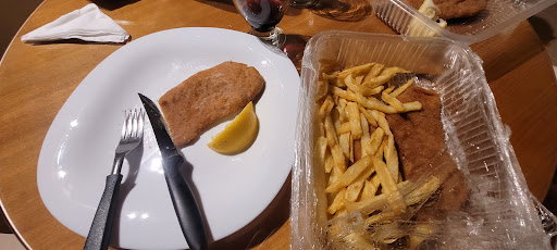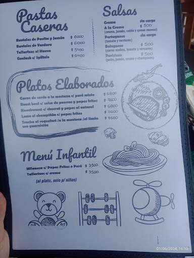 Ubicado del otro lado del río frente al centro de La Cumbrecita, con muy lindas vistas. Decidimos comer afuera porque adentro no estaban las ventanas abiertas y las mesas con distancia por el tema de la pandemia. No te dan alcohol en gel y la carta no es digital, por lo que tampoco sabemos si las desinfectan. En cuanto a la comida, la relación precio-calidad es muy buena, con platos abundantes. Pedimos una pizza grande, un sándwich de milanesa completo c/ papas fritas, una hamburguesa completa c/ papás fritas, de postre panqueque c/ dulce de leche y un flan mixto y 3 bebidas + botella de vino alma Mora chica. Gastamos $2600 arg Aceptan tarjetas de...