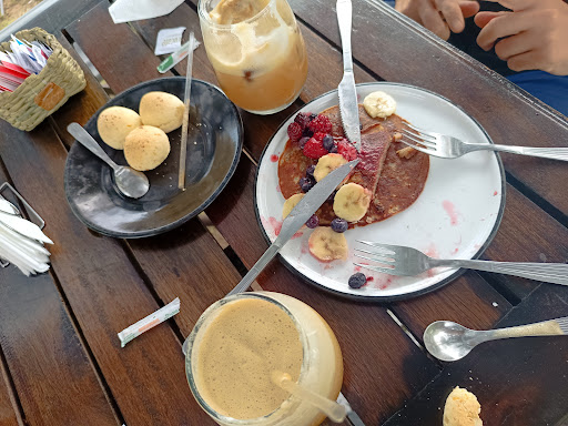 Read moreEl lugar es espectacular! La comida es muy rica, pero las dos veces que fuimos (una a almorzar y una a merendar) los platos no estaban completos (como dice la carta) y no te avisan que no tienen todos los ingredientes. Por ejemplo, pedimos el queso de cabra que venía con hongos, y en vez de preguntar si lo queríamos igual, nos avisaron cuando nos lo trajeron que no había hongos. Y en la merienda, pedimos los pancakes de sarraceno, y vino sin la granola o los frutos secos y con 3 frutas, Pero no nos avisaron, lo trajeron y ya. Acabo de ver una foto en Instagram en dónde el pancake está desbordado de fruta y con granola. Estaría bueno que si no tienen algo, avisen o consulten a quienes pedimos los platos porque por ahí lo quiero cambiar, no se. Repito, el lugar es espectacular, la vista hermosa, pero tendría que mejorar en eso. Ah y de paso compramos croissant y pepas de sarraceno para llevarnos y también muy ricas! Espero que puedan tomar como...