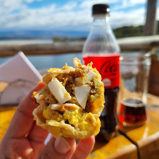 Nuestra experiencia fue muy buena. Picada para dos con materia prima excelente (la misma que venden en el área de regionales y recuerdos varios) La vista es increíble, hermoso lugar para sacar fotos. Fue el único lugar al que fuimos del dique Los Molinos y en temporada baja. Los baños sencillos pero limpios. Claudio un genio total, nos hizo una degustación y todo de queso, jamón y nos recomendó lugares y productos para seguir visitando. Otro chico que nos atendió antes también súper buena onda. Fuimos con un perrito pequeño y no tuvieron ningún problema. Recomendado. Volvimos hoy después de 3 años y nos encontramos con que el lugar sigue en obra por ampliación. Te reciben siempre con degustación muy cordial de algún embutido o queso de los que venden. Igualmente pudimos acceder al área con mirador y mesas afuera para comer algo. Esta vez probamos las empanadas fritas de carne que estaban bien calientes recién hechas, buena cantidad de relleno, buena masa y muy buen sabor. Precio asequible.También nos llevamos queso de oveja que solamente habíamos conseguido ahí y es excelente (1100 a 1500 pesos aprox la horma en Julio de 2022). Algunas cosas para tener en cuenta: lo que es el área del mirador no lo considero apto personas mayores, con movilidad reducida y precaución con infantes por lo empinado y en general en cuanto a su infraestructura. No hay carta así que conviene aunque sea algo incómodo consultar los precios y las opciones antes de pedir a la moza. En caso de querer compartir piden abonar un 50% adicional sobre el valor del plato aunque la porción sea la misma. Los platos son de costo elevado pero a simple vista de porción generosa. Solo aceptan efectivo y transferencia pero dificilmente haya señal así que diría que es...