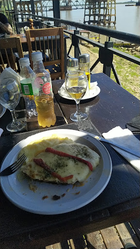 Read moreEl lugar es muy lindo, si no hace demasiado calor o llueve con viento, ya que son terrazas sobre la costa del Río Parana, lo cual te da la posibilidad de apreciar una hermosa vista del río y puente, mientras se come. La variedad de platos no es mala, pero concurri con mi familia al medio día un día de semana, y muchos platos del menú no estaban disponibles, solo para horario de cena nos dijeron. Son platos elaborados, lo bueno es que a pesar que todos pedimos diferentes menús no tardaron casi nada, y llego todo muy bien, los sabores exquisitos. Si hablamos de precios, la verdad no son altos para ser platos elaborados, todos rondaban entre los $5000 y $6500. La atención mo fue buena. No contaban con opciones para postres, solo helados comerciales (palitos bombón y vacitos de Frigor, esas lineas). En mi familia pidieron todos platos diferentes con pescados, y todos fueron elogiados por su sabores y la cantidad (surubi a la Suiza el cual cuenta con papas fritas y pescado con salsa blanca gratinada; Surubi al paquete, empanadas fritas de suribi, surubi al grille con puré de papas, y lomo a la Suiza-misma preparación ya mencionada, pero con carne la cual estaba...