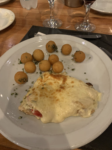 Éramos una mesa de 20 personas fuimos porque estaba recomendado y por la vista que es muy bella. Sin embargo la experiencia fue malísima. Desde el inicio lo que queríamos pedir no había y no lo avisaban cuando uno pedía sino que por ejemplo con las empanadas de pescado dsp de más de 15 min de haber tomado el pedido anunciaron que no había. Además pedimos pan y cuando trajeron la panera nos dijeron que nos fijáramos cómo usarlo porque no había más. Lo peor fue cuando llegaron los platos de surubi, promediaban los $2.000 y no era ni un filet y venían con 7 papas noisette que bailaban en el plato. Al ver eso pedimos hablar con la persona encargada que nunca se presentó dejando solo a mozo poner la cara. Luego de reclamar nos trajeron 5 platos más (habíamos pedido 15 surubi) sin preguntar si los aceptábamos. Los nuevos platos eran peores uno de los surubi al paquete no tenía pescado solo salsa. Lamentablemente fue una vergüenza no están preparados para el turismo (fue fin de largo). Sumado a que pedimos surubi porque no tenían más pacu. Solo debo decir que los platos que tenían carne o pasta si estaban bien servidos. Por nuestra parte, intentamos hacer el reclamo y luego procedimos a pedir el descuento de 6 platos ya que realmente las porciones no estaban completas. Una lástima pero si piensan entrar sigan de largo. Dejo fotos de los platos que encima se ven beneficiados por el queso porque abajo del queso casi no...