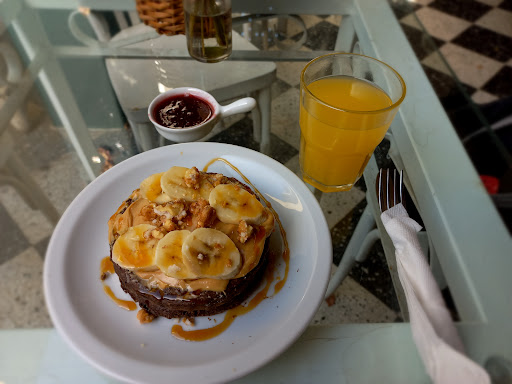 Read moreEl lugar es acogedor, medio laberíntico pero no por eso desagradable (querés tomar un café y primero tenés que pasar por una zapatería / casa de decoración, mesas que se supone que están bien contiguas a la pastelería, pero no, al foooondo está el lugar de donde salen los mozos a atenderte -si te ven-, sino, acercarte vos y preguntá dónde podés encargar un desayuno). Esta vez pedí un pancake de chocolate con frutas, nueces, miel, mantequilla de maní y salsa de frutos rojos, que fue realmente delicioso. No puedo decir lo mismo del jugo de naranja que pedí, que con solo verlo me di cuenta de que no tenía color, y mucho menos sabor. Pero como dije antes, el pancake era delicioso. Lo...