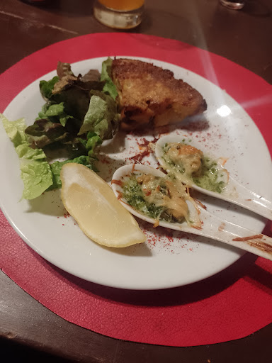 La tapa fue Una gamba gratinada y una tortilla de papa y hojas verdes.