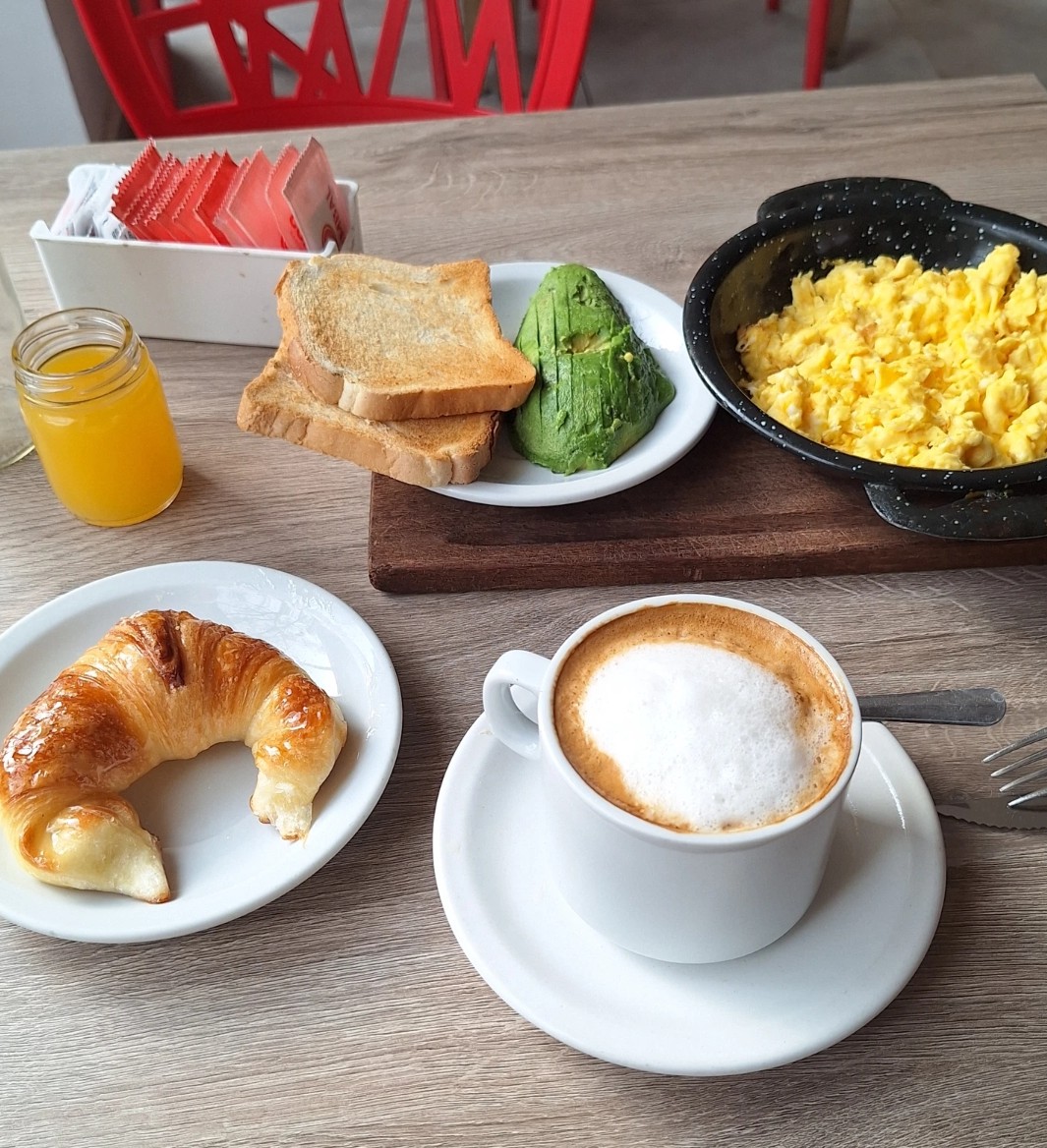 Read moreEl lugar muy lindo y el servicio correcto, precios acorde. Pedí un desayuno americano (café con leche, tostadas, palta, huevos revueltos y un jugo chico) y una medialuna dulce. -) La porción de palta y huevos es perfecta, muy abundante (parecían 3 huevos revueltos y media palta mediana). Una lástima que no trajeran limón, sal o pimienta para condidementarla. -) El café estaba bien, nada de otro mundo pero rico. Implementaría alguna decoración tipo "Latte Art". -) La porción de tostadas a mí parecer no era acorde a la de huevos, eran 2 tostadas chicas (un poco más grandes que las tostadas tipo "Riera", pero de pan de campo), cuando deberían ser mínimo 3. -) La medialuna estaba muy rica, con bastante almibar. -) El jugo no me gustó para nada, excesivamente chico (lo avisan en el menú pero parece del tamaño de un shot). Además, a mi parecer es comercial (tipo Cepita). En resumen el lugar me gustó, por lo que pagás es excelente. Si implementaran lo anterior sería un 10, recomendable. Pd: Lo mejor fue la música,...