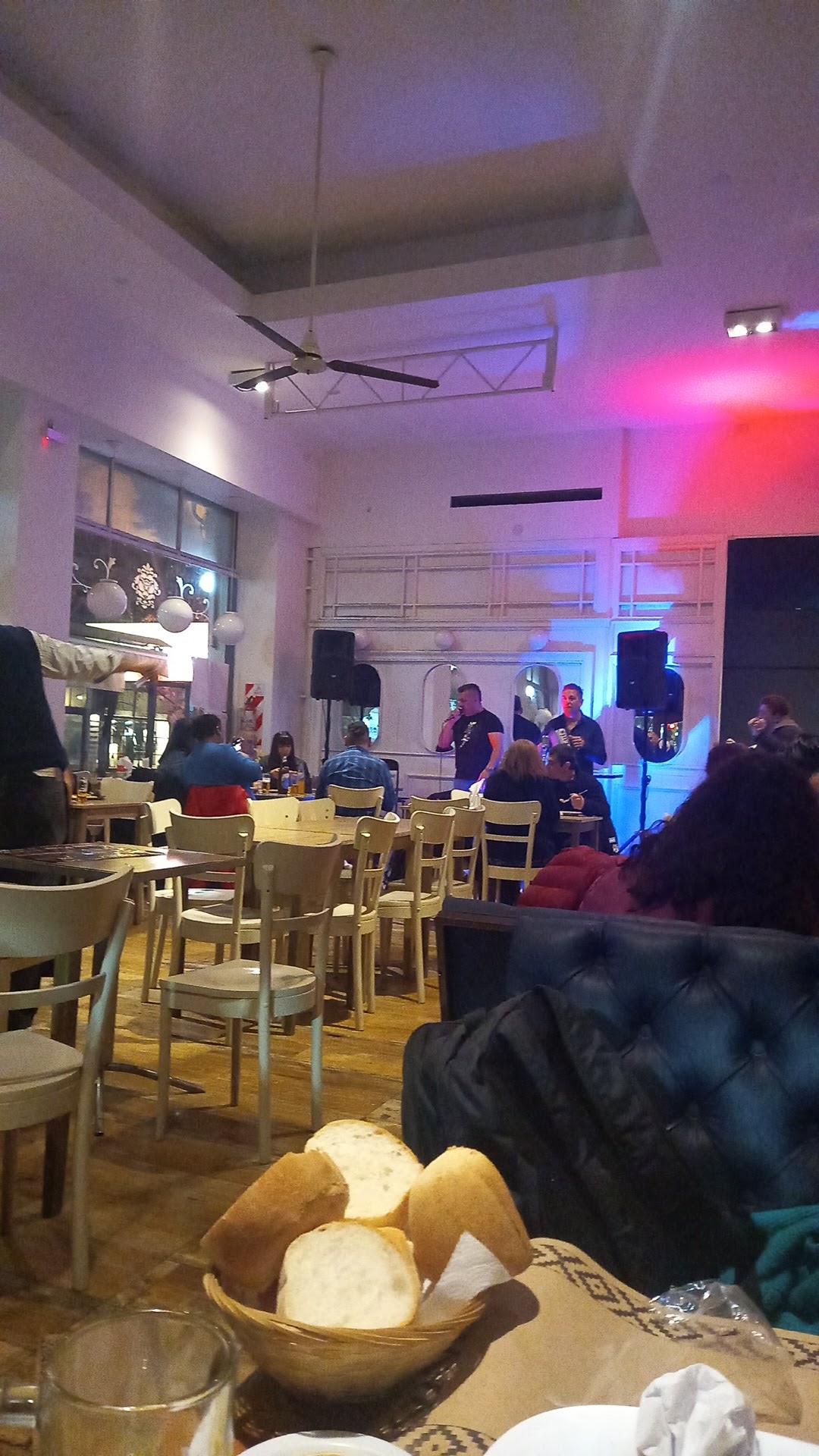Read moreUna experiencia horrible. Pedimos una entrada de rabas (por cierto, no las pidan, son puro aceite viejo y viene con papas en el mismo estado...), y una cerveza. Cuando entramos el local estaba lleno. Se subió un tipo a un "escenario" y empezó a "cantar" sobre pistas de cumbia y cuarteto. El volumen estaba excesivamente alto. No se podía mantener una conversación con la persona que tuvieses al lado ni gritándole al oído. La gente tuvo que verse forzada a dejar de conversar en familia, en pareja, entre amigos, y resignarse a escuchar a este tipo gritar sobre pistas... De a poco se empezaron a retirar todos del lugar... Al 4to tema ya se habían ido 7 mesas... La verdad, ni pedimos plato principal y nos retiramos. Muy patético y de cuarta. No lo recomiendo en lo más mínimo...a no ser que estén buscando un boliche bailable y no un lugar...