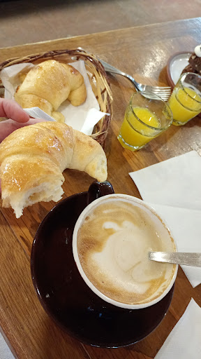 Read moreEl lugar está al lado de un hotel, que la verdad no vi el nombre pero creo que se llama los cóndores. El lugar está bien ambientado es una cabaña todo en madera y piedra, la atención es cordial. Vamos a lo importante el exprimido me pareció bien (7 de 10) fresco, cómo ya sabemos los exprimidos de naranja no son baratos el vaso debe ser de unos 300cc y está $90; el tostado no me gustó el queso no estaba derretido y aunque quedó el pan semi quemado por fuera en el interior el queso no sintió en lo más mínimo el calor (puntaje 5 de 10) estaba arrebatado $180 estaba bien de cantidad de fiambre, sin embargo le faltó buena preparación. No volvería. Aceptan visa...