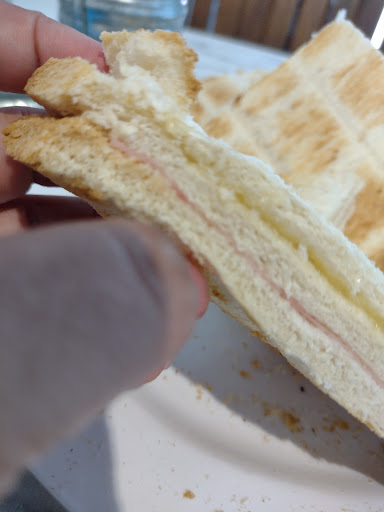 Un lugar que parece cuidado y te da la sensación que todo es rico... Pero no es asi! El tostado con una lámina de queso y jamón que realmente parece que estás comiendo un pan de miga, mal tostado. El cuidado del lugar.... El baño da directamente dónde están las mesas, la puerta no tiene picaporte, en lugar de eso tiene papeles y una cinta que traba la puerta, ojo! Si cerras bien, te quedas encerrada! Un solo baño, mal cuidado y sucio! Una lástima porque de verdad que la impresión que tenés al pasar es 100% diferente que la experiencia que podes llevarte. La atención... La camarera ni pregunto porque solo probé el "tostado" solo cobro la mesa y listo! No...
