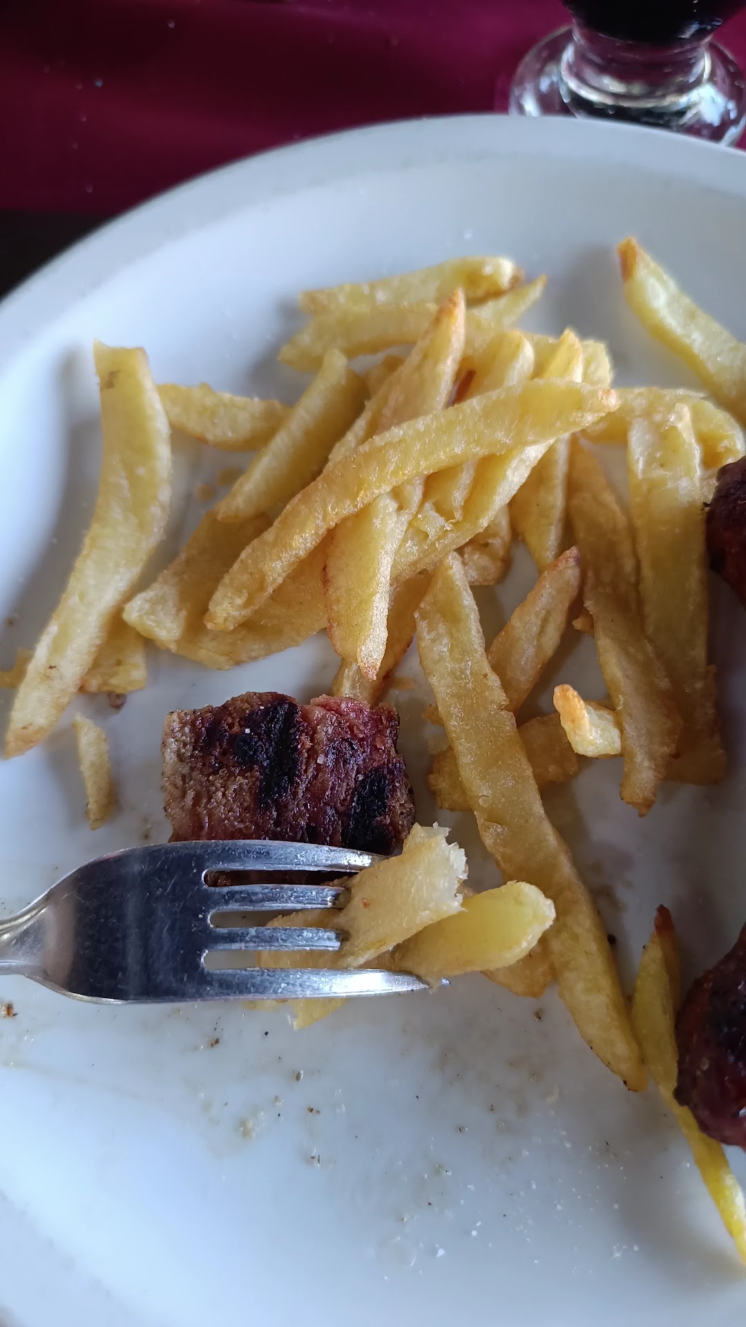 Read moreMe gustan los lugares así, a la vieja usanza! Comí parrillada, para dos es abundante sin exagerar! Alcanza y casi sobra... pero está tan a punto y rica que no dejás nada!!! Un aparte: las papas fritas son un espectáculo, súper crocantes y sequitas!!! Muy buena la empanada de cortesía (querría más!! Jeje...) Y los precios son buenos, no es caro y si lo fuera lo suple la calidad! Comimos en el patio, precisamente... En una noche soñada para comer justamente allí. Único punto en contra; eran las 0:30 de un sábado de verano, y empezaron a guardar las mesas vacías o apenas se vaciaban, en el salón, con la consiguiente sensación de "bueno, vamos apurando..." Bastante penoso teniendo en cuenta que pensábamos pedir postre y se nos cerró el apetito. Gente, si trabajan en gastronomía, se deberían acostumbrar a estar algo 'más tranquilos' para irse... Pero solución: iremos más temprano la próxima... Aunque sea incómodo. Resumen: muy rico pero...