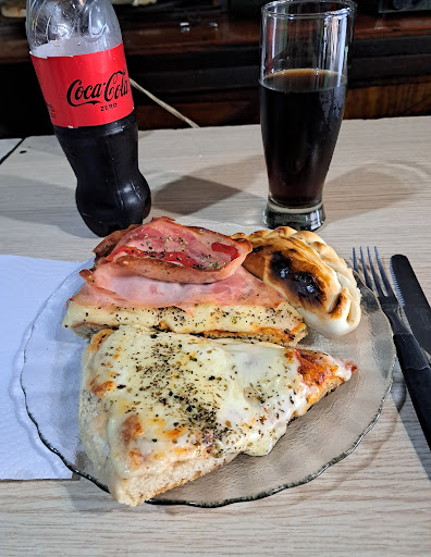 Bar de los de antes, con iluminación tenue. Disponen de tres mesas de pool y una barra extensa. 🎱 Respecto a la gastronomía, me gustó bastante la empanada de carne. Con un toque de picante hubiese sido la gloria. Las porciones de pizza me parecieron regulares, aunque estaban tibias casi frías. Mejoraría la calidad de la muzzarella y del jamón (no se le sentía el sabor a este último). Los precios son acordes y la...