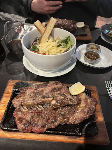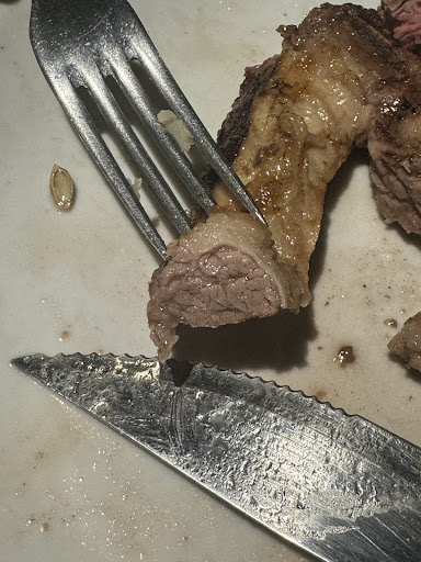 We ordered the beef ribs, sirloin steak, and Caesar salad. The meat was consistently disappointing: overly fatty, full of sinew, and tough to chew. The side dishes were a disaster as well – I have no idea how you manage to make stuffed potatoes so hard that half of them were basically inedible.