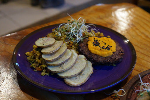 "Curcuma Cocina Vegana Natural y Alimentacion Consciente" is one of the best vegetarian / vegan choices to try in El Chálten, having lots of vegan main dishes and appetizers beside diverse choices of juices and some interesting desserts. The price is a little bit higher than the other places on the town, but remember that this is Patagonia, and we see that the ingredients are fresh and of quality, and beside that, the flavors and preparations are really carefully done. It doesn't open in Fall / Winter seasons, the. The ambient is small and rustic kind of a little cottage, with playful decoration along the small tables, and it was in expansion when we visited it - the service was good.