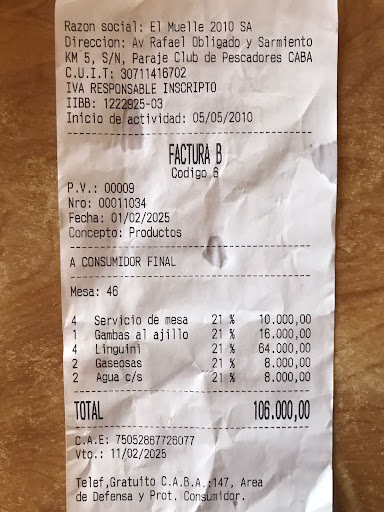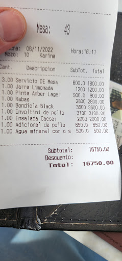 Pagamos, pero nos debía el ticket fiscal, que nunca llegó. Nos levantamos y mi hermano tuvo que ir a pedirlo. Encima, le mintieron en la cara, ya que la camarera le dijo: "Fui a dejártelo en la mesa y no había nadie", cosa que nunca hizo, ya que no nos fuimos del lugar, sino solo de la mesa, y nunca se acercó. Cuando le dieron el ticket, ni siquiera era el nuestro, sino de otra mesa. Resultó ser que nunca lo habían impreso.