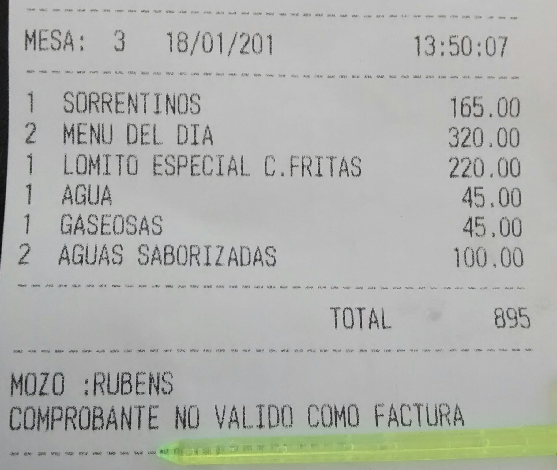 El lugar posee aire acondicionado (aunque el interior está lejos de estar fresco) y WiFi gratuito (cuya contraseña no es facilitada luego de ocupar una mesa). La entrada gratuita es pan con manteca de hotel. En comparación con otros locales de comida, los precios no son económicos (poco accesibles); además sólo venden bebidas (aguas y gaseosas) pequeñas y muy costosas. El mozo casi toma mal nuestro pedido; la comida llegó 30 minutos después. Los platos eran poco abundantes y dejaban mucho que desear (lomitos de pan quemado y pastas con salsas muy pobres). El sándwich de lomo venía sin guarnición: las papas fritas debieron pagarse aparte (15% del costo total del plato); la porción era diminuta y estaban quemadas. Eso sí, la cuenta apareció muy rápido: no era un ticket...