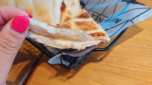 Read moreFue la primera vez que entramos! La atención del mozo excelente súper amable, nos ubicó rápido y no demoró tanto en traer el pedido. El lugar es muy lindo. La comida (merienda) en sí no nos encantó digamos. Pedimos café con tostados y un wafle. El café nos pareció poquito en relación a beberlo con algo de comer...(en cualquier estación de servicio te ofrecen más cantidad de café y rico) el tostado estaba rico pero esperábamos algo mejor la verdad (el relleno del tostado fue lo que no nos convenció), el wafle no tenía gusto a nada. En caso de volver pediríamos otra cosa para darle una segunda oportunidad porque el ambiente y la atención es excelente. Agradable! Pero la comida no valió la pena la verdad. Precios: normal, ni barato ni...