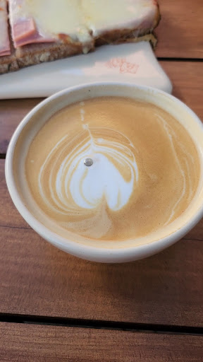 Read moreEs un lugar muy bien ubicado en el Palmares Mall de Mendoza y en general se lo ve concurrido. Decidí sentarme allí en virtud de estos antecedentes, pero la realidad es que me decepcioné bastante. Pedí un tostado con un café con leche, como pueden apreciar algo muy sencillo, pero adecuado para el horario: 18 hs. Muchas veces, los empresarios, con el afán de mostrarse distintos cometen errores importantes, este lugar no fue la excepción. El café con leche lo sirven en un cuenco, no tiene asas por lo que si el té, café u otro producto viene muy caliente tus manos lo sufrirán o incluso al no poder tomarlo desde las asas se te puede resbalar y terminar todo en un mal momento. Una mala decisión del propietario en mi opinión personal. Luego el tostado, me dice el camarero, viene hecho sobre una rodaja de pan en masa madre y una sola tapa, allí ya estaba todo mal, para peor le pusieron mozzarella al jamón por arriba, ese no es el ingrediente de un tostado, con lo cual el tostado tan simple que quería disfrutar se convirtió en una mala opción ya que la mozzarella lo hizo bastante amargo al paladar. Muy mala elección la mía. El café con leche bien. La atención es en general buena y los precios son normales. Te lo recomiendo si no pedís lo mismo que yo, tienen una...