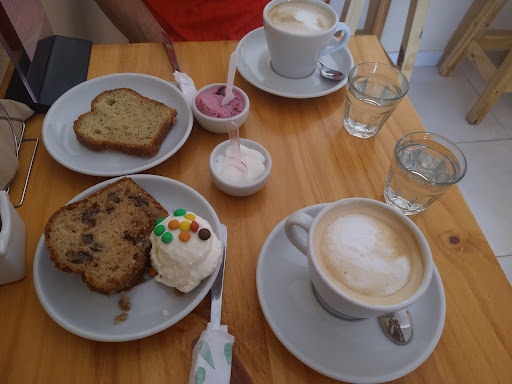Lugar nuevo con muchas opciones para comer y tomar: helados, café, jugos, budines, galletitas, tostados. También hay promociones para merendar.