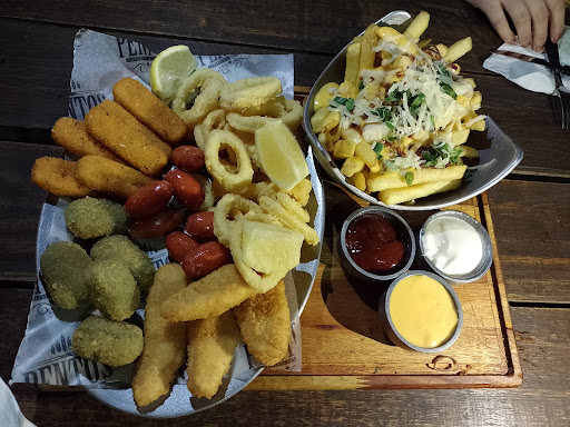 Read moreMuy buena experiencia, nos atendieron super bien 👍, fuimos por el cumpleaños de mi pareja y la verdad que las mozas nos atendieron super bien !, estuvimos en la parte de arriba bastante cómoda. Pedimos el yenga para jugar que esta buenísimo. Tome gyn toda la noche lo cual el de la casa de frutos rojos no fue wow, pero estaba rico. Ahora el gyn bombay ese si que es otro nivel jajaja muy rico! Después me pedi la.ahmburgurs que viene con cebolla caramelizada, ricula cheddar y pepino del cual les pedí que me lo cambien por salsa barbacoa y quedo explotada! Las papas un 10! Porcion abundante junto a las hamburguesa. Pedimos papas con cheddar y estaban riquísimas. Una amiga se pidió un warp y me dijo que estaba explotado. Otro amigo se pidió una hamburguesa con cheddar doble y también estaba explotada. Después los tragos de los chicos junto a jagger, gyn, caipis etc estaban muy ricos! El barman un fenómeno!! Tema precios les puedo decir los míos, gyn de la casa 8400 pesos, gyn boomby 11.000 pesos, la hamburguesa 14.000 y picó, papas 9900. Habia fernet 2 x 1 también! Si sos de buen comer vas a estar bien. La verdad muy buena experiencia y nos fuimos con la panza llena !. Dejo fotos de...