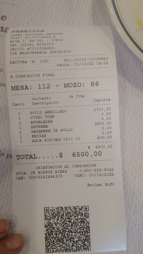Read moreComo hace años se come muy bien. Si bien no es tenedor libre como antes pero está bueno. Pagas un corte de carne, ejemplo vacío $3200 y esto incluye una entrada a elección [ están buenas y justas la porción] en mi vaso pedí arrollado de pollo y viene con rusa más una empanada de carne frita [ rica jugosa y picantona ] . También apenas te sentas te traen panera con "algo" para untar [ rico parecía un humus o algo así] y tostadas. Con la entrada te vas llenando, plato principal es el corte que elegiste el cual es una porción justa, ni mucho ni poco y con lo que comiste antes más la ensalada que trae incluido te llenas. Luego postre yo elegí flan [ lo pedi con crema y era como una crema rara dura y estaba natural no fria, no me gusto], como en la mayoría de lados es el moldesito de vasito. Chico pero casero y rico. Como ya estas bastante lleno también va justo. No hay comida en exceso lo justo y necesario y rico.
