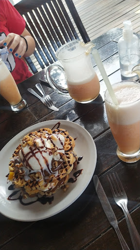 Read moreTorre de waffles y licuado tuttifruti de agua nos encantó el servicio y el mozo un tipo galán simpático que a la hora de tomarnos el pedido nos dió el wifi SIN PEDIRSELO. la comida llegó en un santiamén. pedimos una torre de waffles y compartimos xq el que no convida tiene un sapo en la barriga. te re llena pero no hasta el punto odioso de empacharte. es muy estética, igual a los desayunos que suben las milipilis asiq ideal para subir una his a ig igual después queda un enchastre a la hora de comerlo pero seguro es xq nosotras carecemos de modales para comer la verdad que me da pena que después hayan tenido que limpiar eso. cuando nos dieron la jarrita de licuado venía con un vaso y este ya tenía un poco de jugo, o sea que lo que sobró de la jarrita LO PUSIERON EN EL VASO no ratean las cosas y nosotras no estamos acostumbradas a tan buen trato porque somos de Tucumán. la jarrita rinde para dos vasos y sobró comida, donde comen dos comen tres. lo único malo es que a la par de nosotras estaba sentado un chico y pidió papas para merendar? y se puso a jugar al clash Royale, pero hasta nos resultó comico. buena ambientación musical, tienen el oído de oro. la verdad que superó nuestras expectativas. fuimos felices y eso que no comimos perdices. fin de la Review. una vez más, gracias Lucila del mar PD: le queríamos dar propina al mozo xq nos pareció majo pero nos...