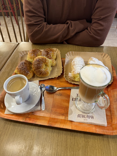 Te cuento la experiencia cafecito en día lluvioso!! Entramos a desayunar algo tranqui y nos fuimos con un desayualmuerzo zarpado!! Fuimos 3 personas y primero pedimos 3 cafés y 2 sandwich más 2 mediaslunas. Nuestra amiga vio nuestros sandwiches y se antojo y nosotras vimos sus mediaslunas y zaz antojadas. Asíque hicimos un segundo pedido. No tardaron ni 10 minutos que ya teníamos el primer pedido listo y para el segundo ponele que tardaron 5 minutos más como mucho!! El café dobles cortados estaba a la temperatura justa y muy rico. El sandwich colmados de queso gratinado y gigante, el pancito del sándwich muy suave!! Las mediaslunas dulces eran como un bombón de almíbar con corazón suave y esponjosito, súper sabrosas. El lugar es muy cálido, el mobiliario y la iluminación son confortables y los empleados nos atendieron con la mejor onda y súper atentos, inclusive el segundo pedido nos lo alcanzaron a la mesa y nos ubicamos arriba! La experiencia "día de cafecito más algo rico en día de lluvia" fue un éxito en atalaya! Volveremos a seguir probando cositas...