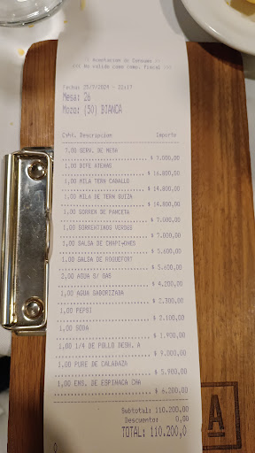 Read moreReserven!!! Se llena al toque y había hasta una hora de espera. Vale la pena. La comida 10/10. El único error fue que se pasó un bife de chorizo y estaba seco. El resto muy bueno. Platos muy completos y llenadores. La carta muy extensa. Había opciones de principal hasta postre sin TAAC (importante). La calidad de la comida muy buena, fresca sobre todo. Lo único el café estaba feo, quemado en realidad. El ambiente muy tranquilo, se puede hablar entre todos y se escucha, está muy bien insonorizado. Por otro lado, la atención muy buena también. Súper atentos todos. De hecho, fuimos por un festejo de cumpleaños y la casa nos regaló espumante para festejar y una velita con el postre. Gastamos más o menos 144 USD para 5 personas con bebida, entrada, principal y postre + café. Precio calidad buenísimo. Volvería y...