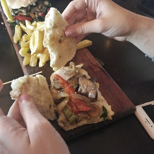 Podría decir que comer aquí fue una experiencia decepcionante, pero mentiría si afirmara que esperaba algo bueno del lugar. Al entrar uno se encuentra con un comedor oscuro y con una mezcla incomprensible de estilos: un John Snow retratado en tiza, caños de luz que trepan las paredes y el techo sin razón laguna, listones de madera que cuelgan del cielo razo a modo de adorno. ¿Pero quién soy yo para criticar la decoración de un lugar? Nadie, un simple consumidor el cual pidió un sandwich vegetariano con papas. El menú prometía un salteado de verduras entre panes integrales con semillas, aderezado con una mousse de palta a $360. A pesar del precio sonaba bien. Se lo encargue un bello y simpático mozo (una estrella por él) y luego de media hora llegó una aberración gastronomía, un castigo al paladar. No solo que la mousse no existía, sino que el maltratado pan no era integral y la crudas verduras se resistían a los mordiscos (adjunto una foto). Sentí tristeza, también indignación. A este sandwich lo acompañaba unas papas que, si me pongo exigente, estaban un poco babosas y con olor a aceite usado, pero elijo pasar por alto este aspecto a la hora de las estrellas. Para terminar, la otra estrella es por la cerveza, luego de una no muy fortuita experiencia uno esperaría un encontrarse con un brebaje caliente y sin gas, pero no. No puedo prometer que no volveré, porque las vueltas del destino pueden llevarme hasta allá otra vez, pero si puedo advertir a futuros consumidores que NO PIDAN EL SANDWICH VEGETARIANO DE...