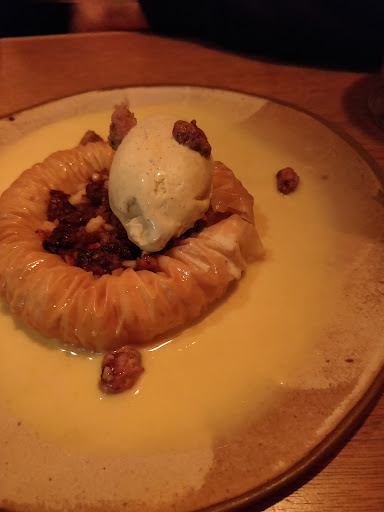 Read moreÉramos 2 para la cena de pasos con Nina los fuegos. Empezó con un plato de quesos y dulces (muy interesante, diferentes texturas y sabores). Luego la entrada de Mbeju, la verdad que nos encantó a ambos, súper sabroso y la porción perfecta para compartir. El trago con Cynar e Hibiscus también muy rico, por ahí un poco demasiado dulce. Seguimos con el primer plato, la milhoja de papa con salsa huancaína. También nos gustó mucho, súper satisfechos con la porción y el maridaje con el Sauvignon Blanc quedaba perfecto. El segundo plato, la hamburguesa de Calamar. Muy rica, quedamos muy contentos, ya estábamos súper llenos pero la comimos igual. Para acompañar un vino, con mucho cuerpo y frutal. Lo único que por ahí se podría decir es que en la carta decía que tenía mayo de Sriracha pero no se sintió. El postre, perfecto. El helado de Pistacho súper cremoso, con gusto a pistacho real. La Baklava crocante y dulce en su punto con una salsa inglesa con anís que encajaba perfecto. El trago que acompañaba con Pinot Noir y jengibre perfecto para algo bajativo para cerrar la cena. Nos fuimos súper contentos, con la panza llena. Esto nos salió $6180 ($3000 c/u + 1 agua) La moza hiper mega amable, servicial y ocupada de como estuviéramos en todo momento. Se tomó el tiempo de explicarnos cada plato con cada bebida y luego preguntarnos cómo había sido nuestra experiencia. El ambiente hermoso y tranquilo, pero sabemos que los fines de semana debe estar explotado de gente, así que mejor aprovechar las cenas así, ya que no se puede reservar en días normales. En conclusión, lo recomendamos y aprovechen los eventos...