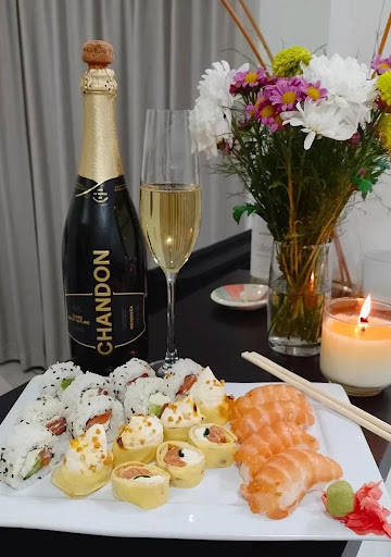 Fuimos 4 personas a las 22:30 el miércoles de Sushi libre. Llegamos y las mozas muy amables nos explicaron cómo funcionaba el día de sushi libre. Pedimos para tomar, dos aperol (que para nuestra sorpresa parecían aperol con jugo de naranja, esperábamos un aperol spritz), una caipi sake (fue el trago que más nos gustó), un gin tonic y dos aguas para compartir. Llegaron los Harumakis de Carne (dos por persona), estaban buenos por ahí la salsa parecía ketchup. Nos trajeron de a dos tablas de 12 piezas (3 sabores por tabla) muy ricos y bien hechos. Las piezas variaban desde clásico de atún, roll con palta, roll sin arroz con queso crema y maracuyá, roll caliente de parmesano gratinado, niguiri de salmón, roll con mostaza y uno crocante con batatas fritas. Pedimos que nos trajeran wasabi y jengibre encurtido. Comimos alrededor de 8 tablas en total (unas 96 piezas) el sushi en general estuvo bien, las últimas 24 piezas fueron una repetición de las primeras. En total gastamos $20000 que nos pareció un poco caro ya que los tragos se quedaron muy atrás (para salir $1000 cada trago). La atención muy buena, el ambiente no dice...