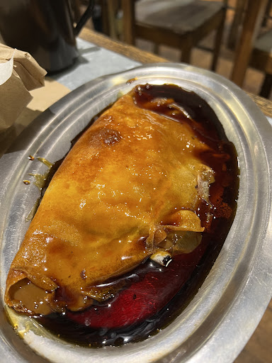 No iba desde que dejaron de ser Café Urquiza y ahora fui a probar el Bodegón… Una decepción total el postre! Pedí panqueques con dulce de leche y en la carta no aclara que vienen bañados en caramelo líquido! Lo cual es totalmente innecesario porque te tapa todo el gusto, solo se siente el caramelo y es innecesario esa cantidad de gusto a azúcar.. vino un panqueque doblado al medio en vez de lo que uno (o yo al menos) se imagina que es no se por ej dos tubitos de masa rellena con el dulce. Tuve que pedir otra bandeja para pasar el panqueque a ver si se escurría un poco el caramelo pero igual obvio estaba impregnado en la masa que no se podía cortar con la cuchara. Comí un poco y lo dejé. Estaría bueno que lo aclaren en la carta como viene porque si lo decía yo no lo hubiera pedido o sino lo pedía sin, me quede con ganas de sentir el sabor de algo tan simple como el panqueque con DDL.